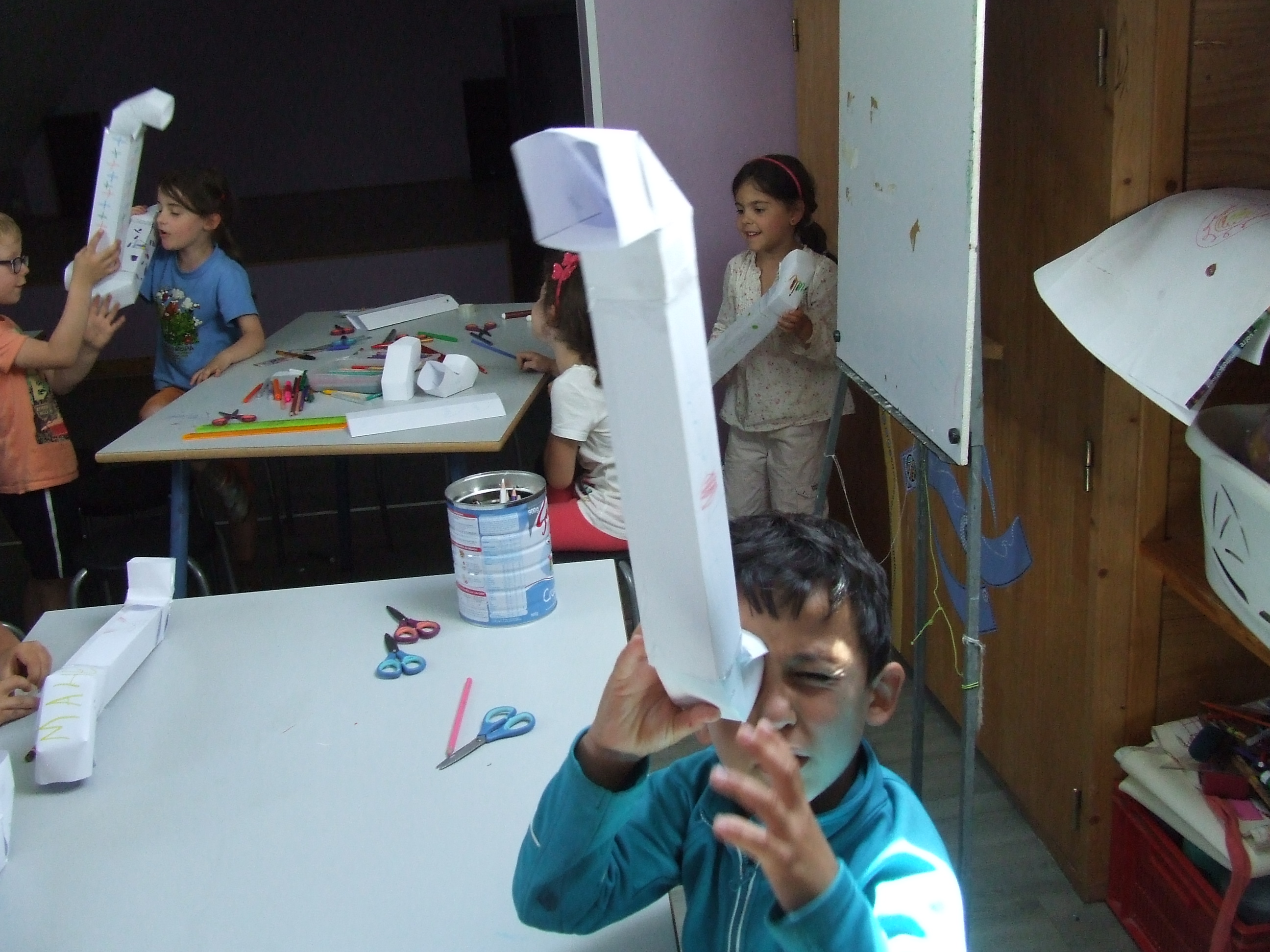Aujourd'hui, sciences avec la construction d'un périscope, musique avec des Bachet ( nom des inventeurs) et boum en veillée.